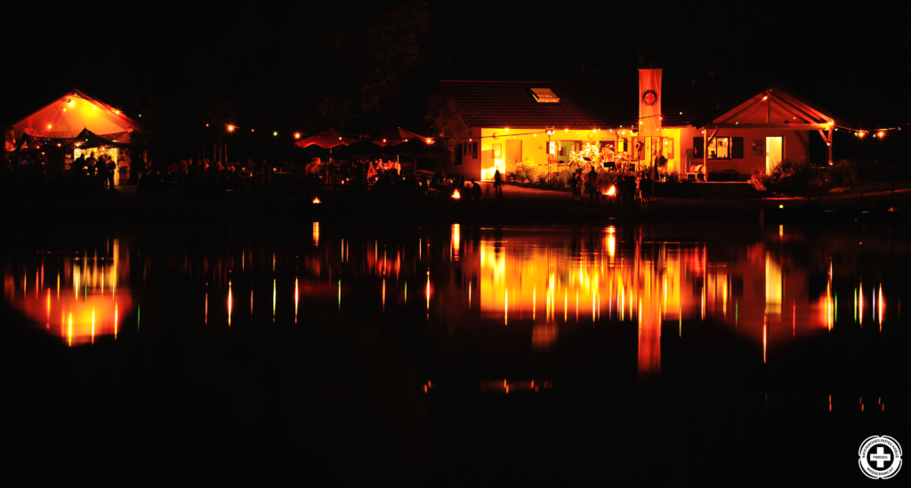 Open Air am Badeweiher. Im Sommer gelingt uns mit SOMMER SOUND ein großer Coup! Schon am Nachmittag des 11. Juli 2015 fand mit dem Sautrogrennen am Weiher eine Fetzengaudi bei herrlichem Wetter den entsprechenden Anklang. Hüpfburg, Bootfahren und Wundenschminken für die Kinder waren begehrte Attraktionen. Wie bei der Wasserwacht üblich, gab’s natürlich am späteren Nachmittag einen deftigen Regenschauer. Am Abend konnten wir bei wieder trockener Witterung doch noch zahlreiche treue Gäste begrüßen. Es hat sich gelohnt: Tolle Abendstimmung mit sanfter Beleuchtung und einer ausgewogenen Musikauswahl für Junge und Junggebliebene, offenes Feuer in sicheren Schalen beleuchtet romantisch das Weiherufer. In der kürzlich fertig gestellten Bootsgarage fand ein reger Barbetrieb bis in die späte oder frühe Nacht hinein die Gunst unserer Besucher. Ein unvergessliches Ambiente – oder – griabig war’s!
